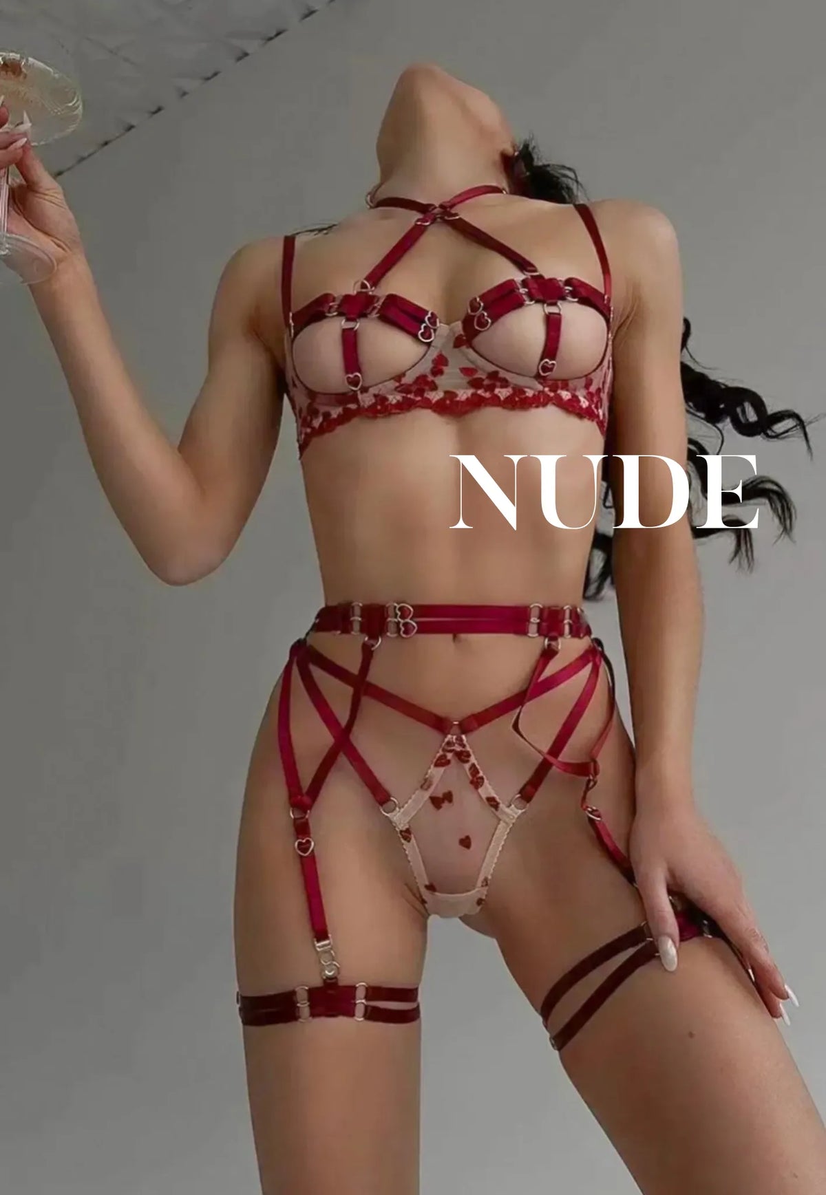 Set lencero de 5 piezas en color rojo. Bra con "cutouts" al frente.