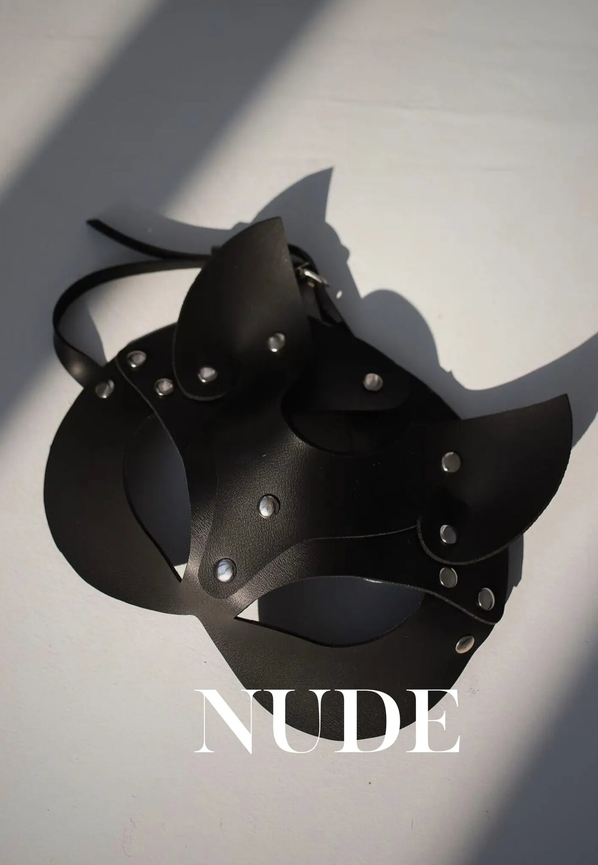 Máscara de gatito en vinipiel de 2mm negro con herrajes color plata.