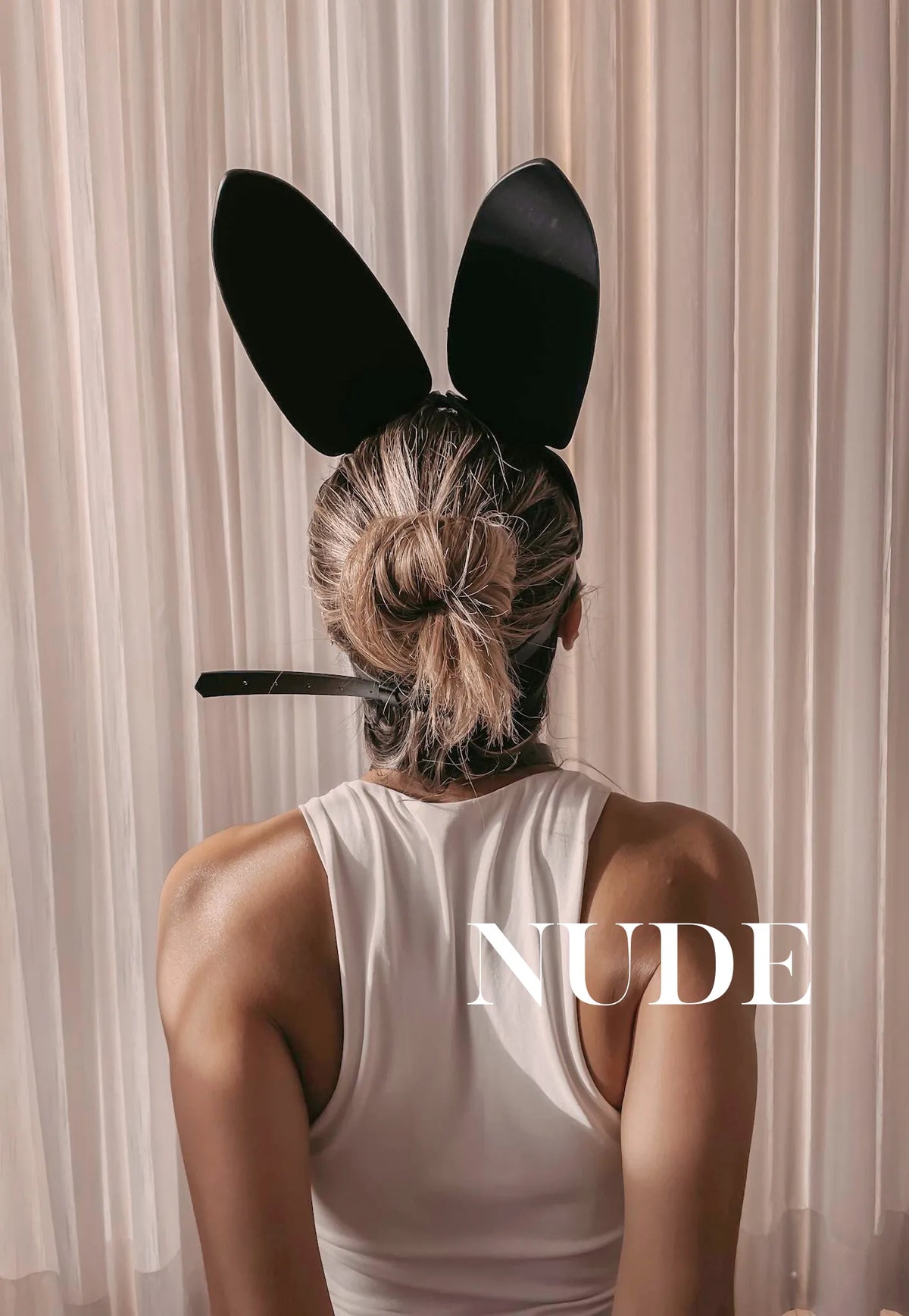 Máscara de conejito en vinipiel de 2mm negro con herrajes color plata.