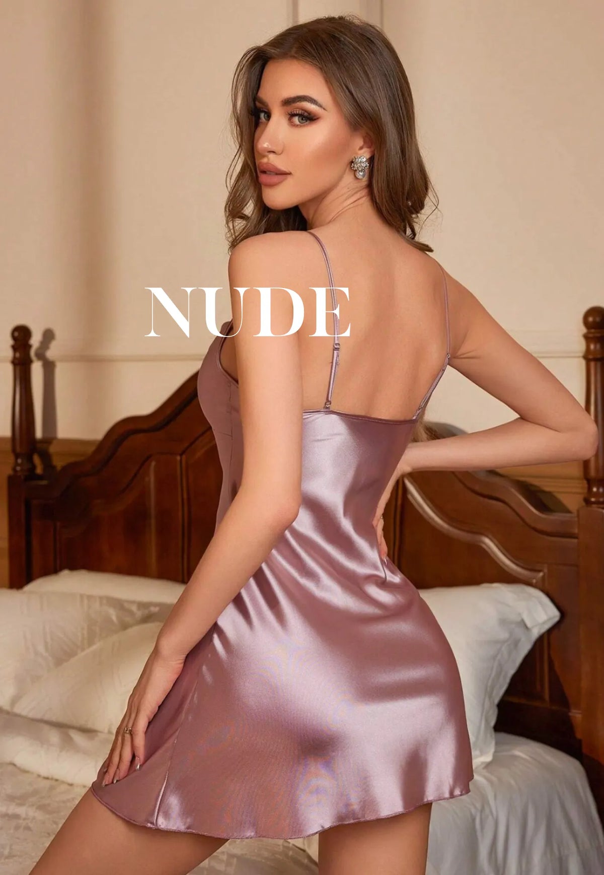 Pijama lencera en tela satin ultra suave fruncida en el pecho para enfatizar el escote.